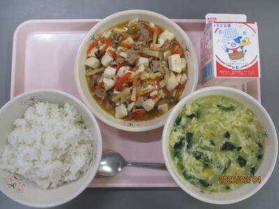 ごはん 牛乳 四川どうふ 中華風コーンスープ