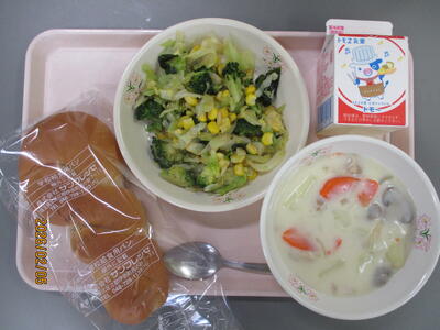 ツイストパン 牛乳 チキンクリームシチュー 野菜サラダ