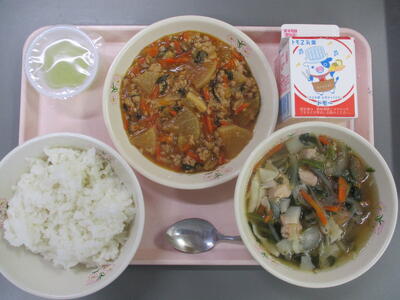 ごはん 牛乳 マーボー大根 ワンタンスープ 青りんごゼリー