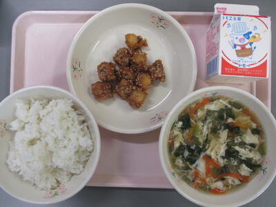 ごはん 牛乳 たらのごまみそあえ かきたま汁