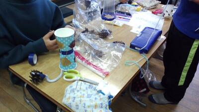 1年生の生活科では、秋の材料を集めておもちゃづくりに挑戦しています。