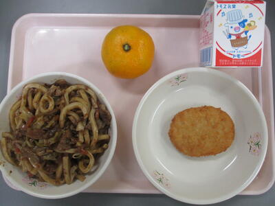 ソース焼きうどん 牛乳 川口コロッケ みかん
