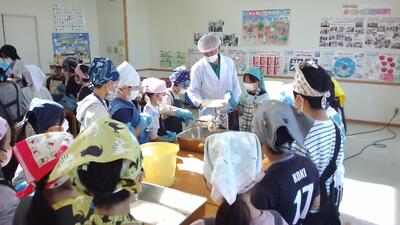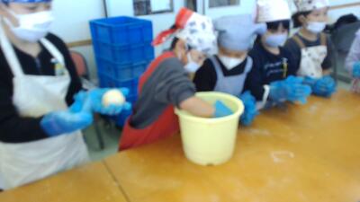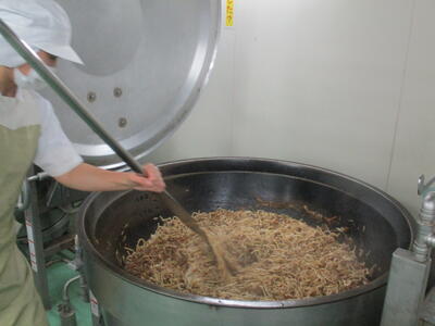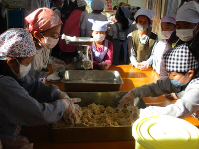 国語「すがたをかえる大豆」の学習で、新井武平商店様にご協力いただき味噌つくりを行いました。