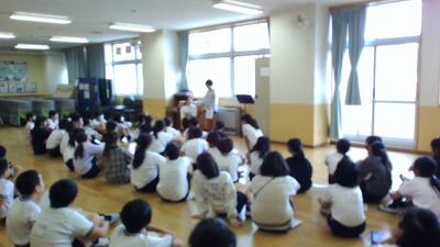音楽会の練習によって時間割が変更し、今日は2クラス合同で外国語を行いました。
