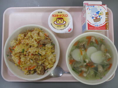昆布ごはん 牛乳 厚焼きたまご みそけんちん