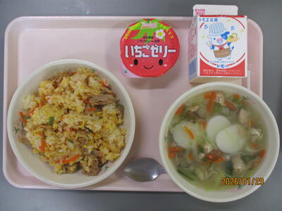 豚キムチチャーハン 牛乳 トック プリン または いちごゼリー(セレクトデザート)