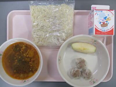 12月2日(火)の給食 投稿: 青木中央小学校 (12:58) タンタンメン 牛乳 ポークしゅうまい りんご 今日は「りんご」について紹介します。 リンゴは人類が食した最古の果物で、起源は約8000年前とされています。日本では明治時代から栽培が始まりました。栄養価が高く、食べやすいため、世界中で好まれています。欧米では「一日一個のリンゴは医者を遠ざける」といわれてきました。低カロリーで腹もちが良いのも魅力です。食物繊維は皮に多いので、皮ごと食べましょう。